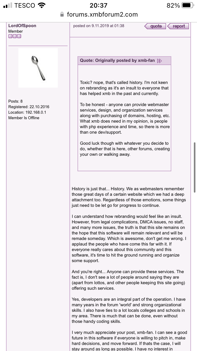 | Steps To Reproduce | https://forums.xmbforum2.com/viewthread.php?tid=777048 This thread in particular seems to show this bug quite well, but any thread with an ordinary user posting and a staff member will work. | ||||