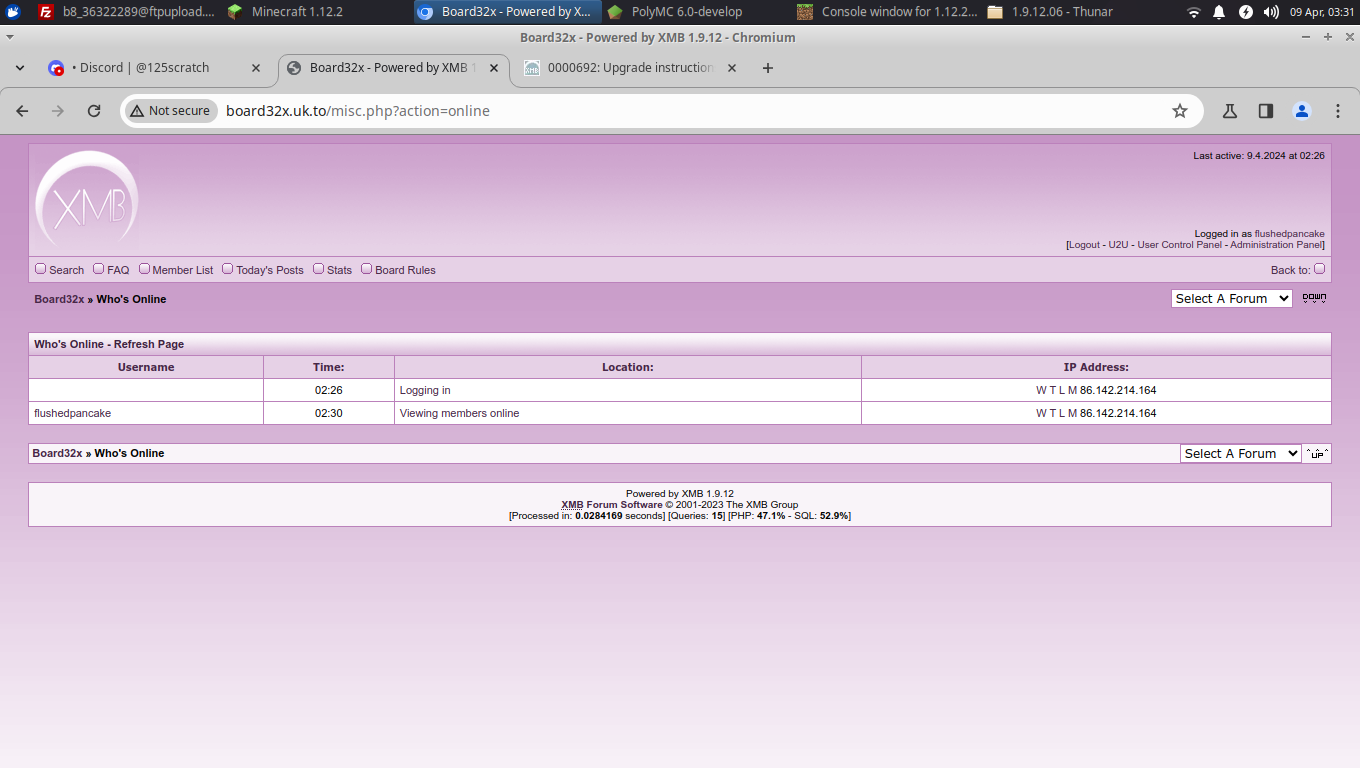 | has duplicate | 0000697 | closed | miqrogroove | Who's online is inconsistent between the index page/post sidebar/who's online page |